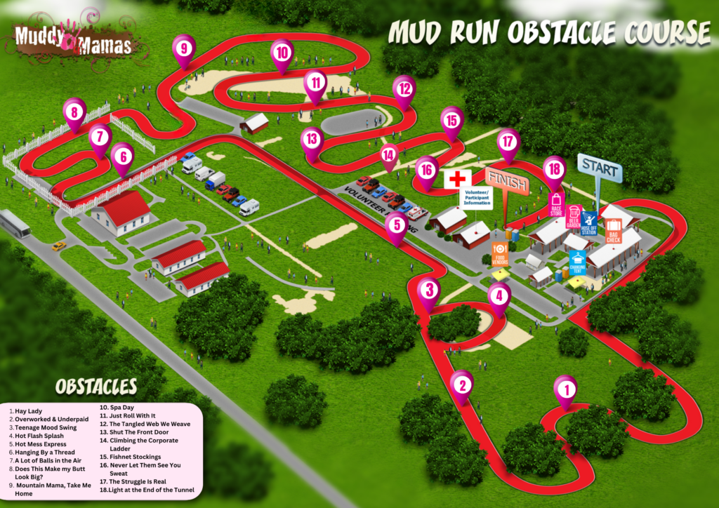 First to sponsor, first to choose your obstacle with a branded encouragement for our Muddy Mamas. Please have second and third choices ready just in case!